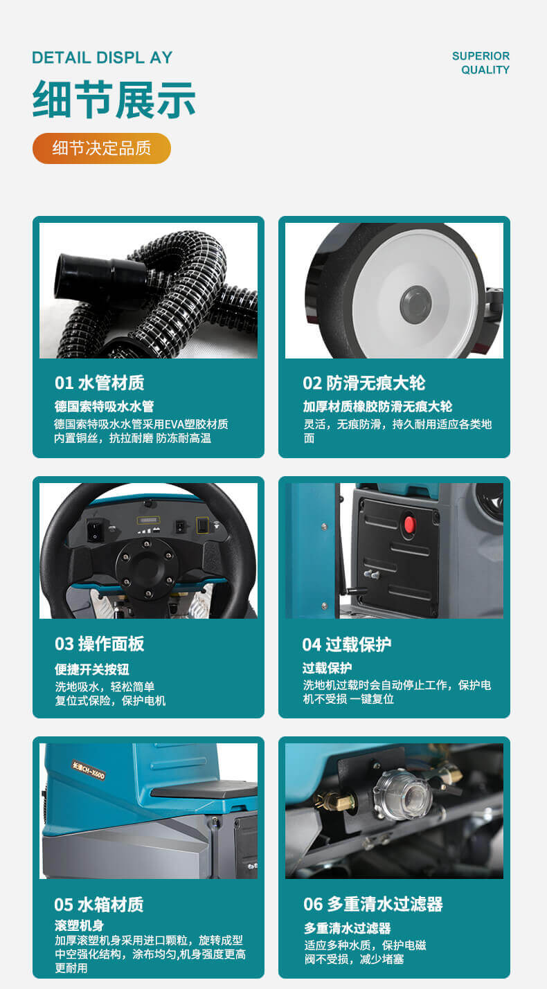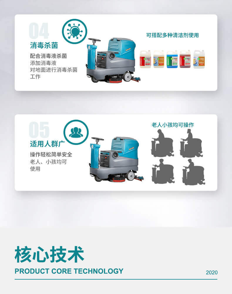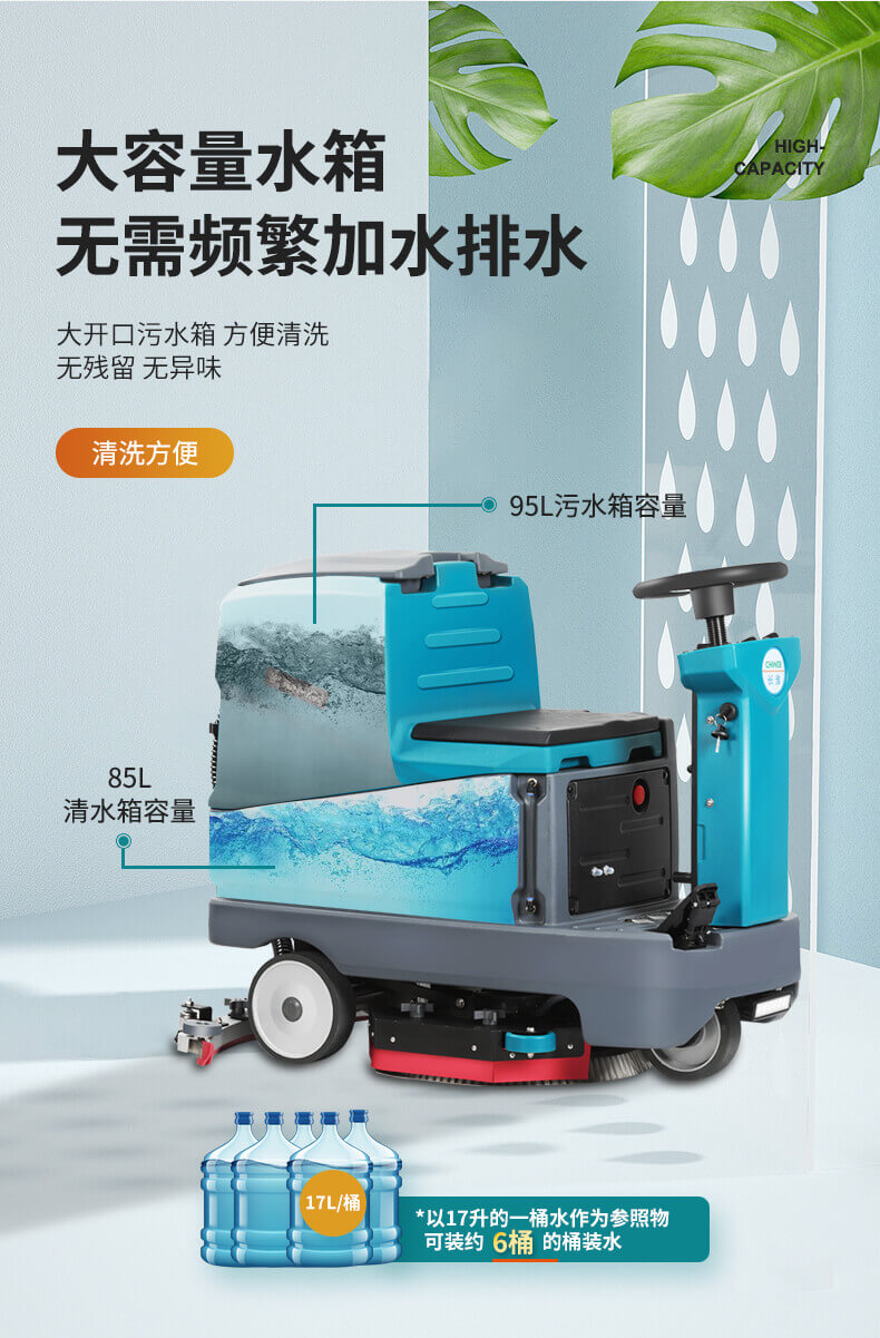 用途:雙刷駕駛式洗地機,洗擦、吸干一次完成,適用于中大面積場所,每小時可清洗5000平方米地面,快速清潔,省時省力,顯著提高工作效率和地面清潔質量。