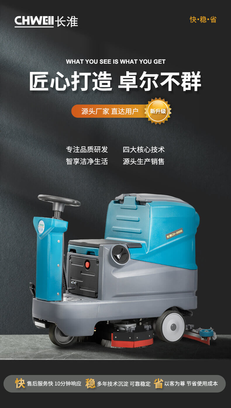 長淮CH-X60單刷駕駛式洗地機 快速清潔省時省力